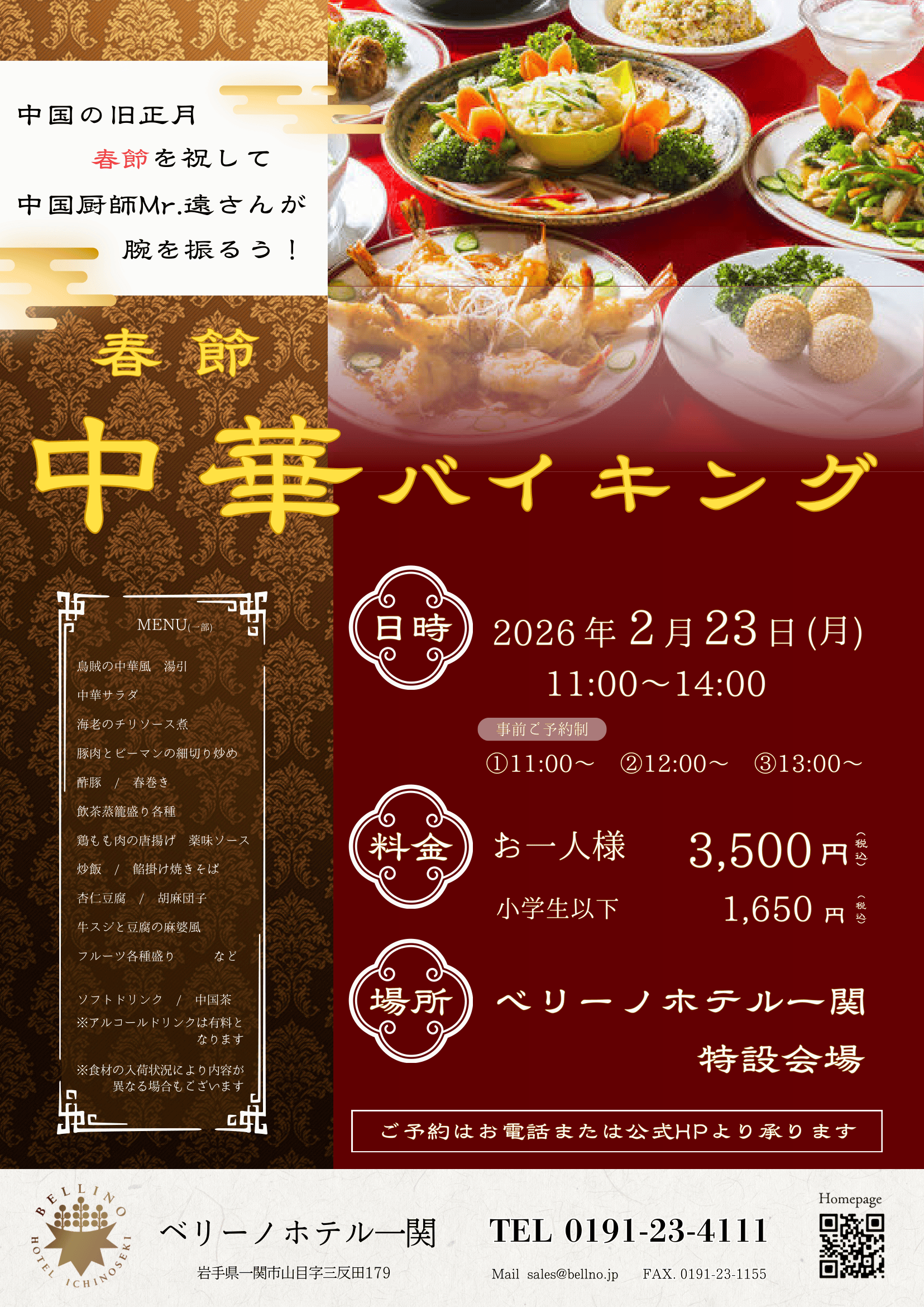 この機会にぜひ、本格中華バイキングで旧正月を華やかにお祝いください。